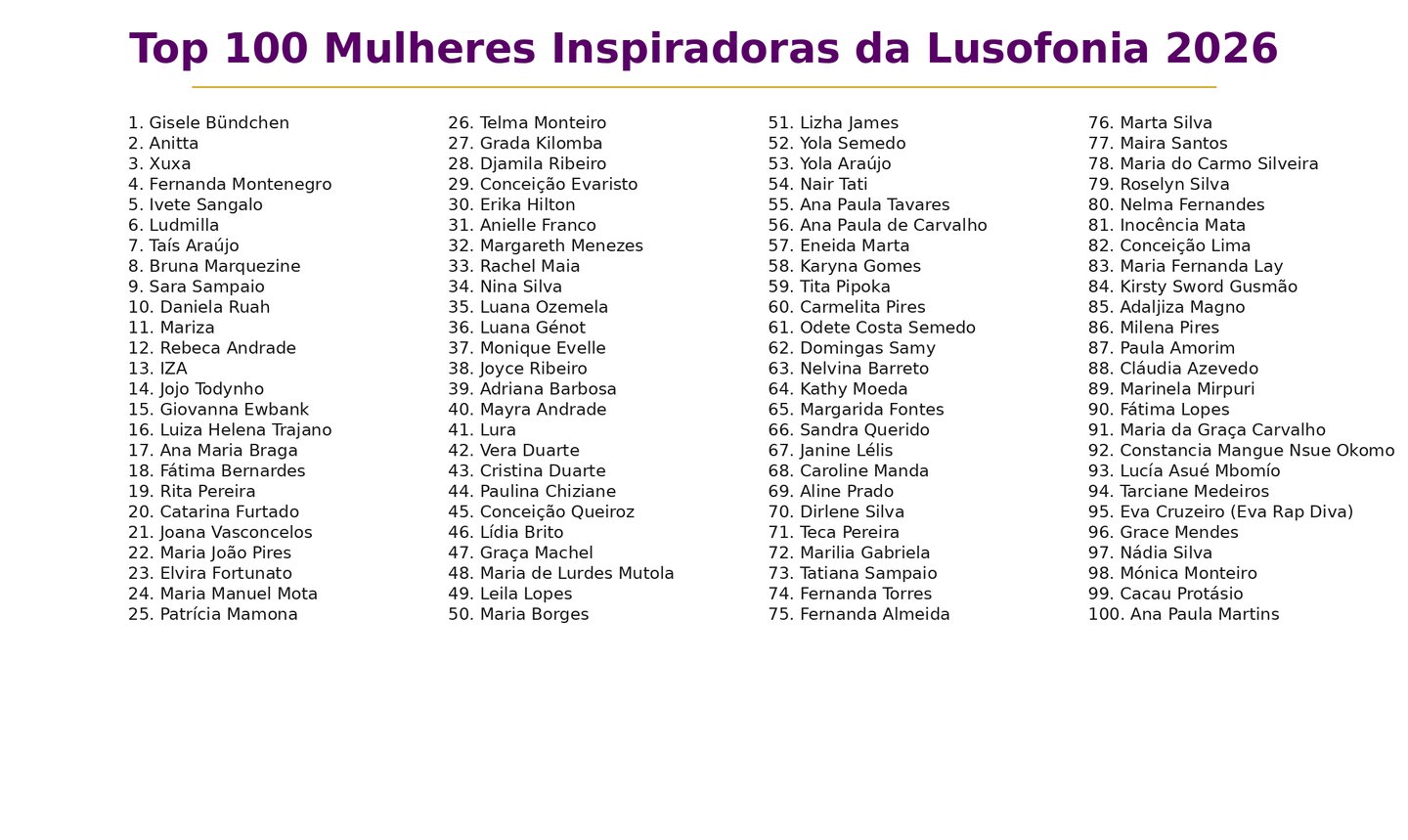 Top 100 Mulheres Inspiradoras DA LUSOFONIA— 2026