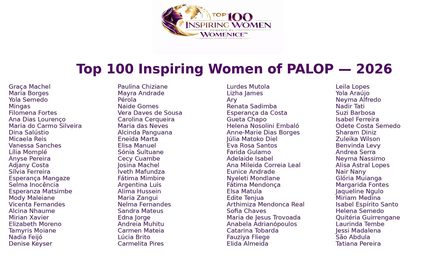 Top 100 Inspiring Women of PALOP — 2026
