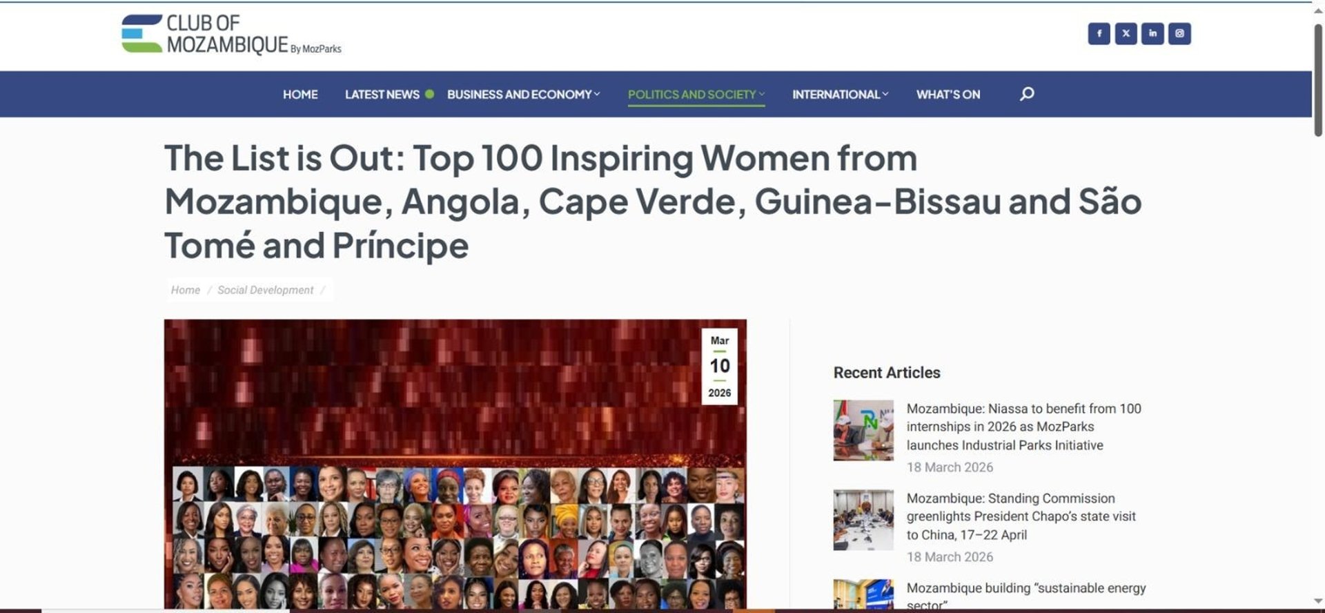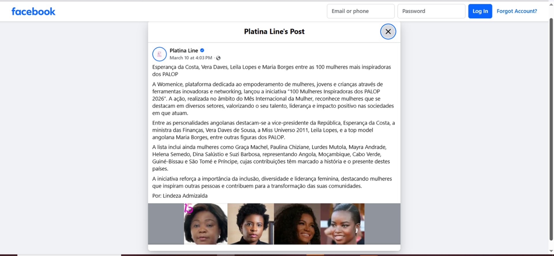The PALOP region — comprising Mozambique, Angola, Cape Verde, Guinea-Bissau, São Tomé and Príncipe, — represents a powerful cultural and linguistic identity across Africa. This list brings together women from diverse sectors, including business, science, politics, arts, media, and social impact, highlighting their leadership, contributions, and influence at both local and global levels.